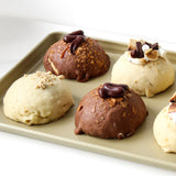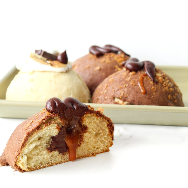 2. conchas rellenas de caramelo y chocolate.
