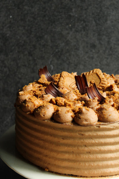 speculoos: pastel de crepas naturales con crujiente de chocolate gold, , crema de mantequilla de speculoos, cremoso de chocolate, ganache montado de chocolate y galletas de speculoos